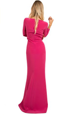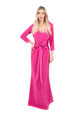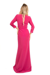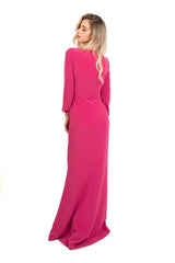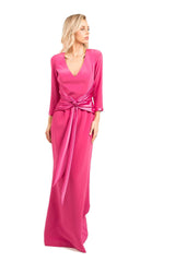 Vestido madrina de gran importancia y elegancia. Confeccionado por el revés de la seda para lucir el lado opaco y así dejar solo en detalles el brillo del tejido. Disimulando abdomen con la misma seda tipo aplicación plegada por el lado brillante. Estilizando delicadamente la silueta gracias a su caída con peso. Espalda tapada y escote delantero en V. Resaltando escote de una manera sutilmente sexy sin mostrar demasiado. Perfecto para una madrina o invitada importante.