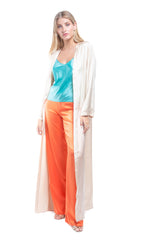 Nuestro icono para vestir con estilo sin necesitar nada más. Estiliza la figura gracias a su corte vertical y destaca por su caída liviana que entrega un movimiento volátil al caminar. Úsalo cerrado o abierto sin necesitar vestir demasiado debajo, ya que este destaca y deslumbra por si solo de la manera más estilosa y cómoda posible. Perfecto para todo tipo de cuerpo y ocasión. Aplicación de bordado llamativo en espalda para marcar la diferencia.