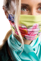 Mascarilla Estampado Fondo Amarillo Flores Tropicales