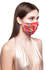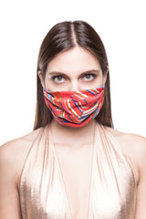 Mascarilla Estampado Rojo Anaranjado Líneas Geométricas