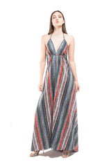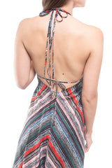 Vestido Amarras Escotado Estampado Texturas Líneas Retro