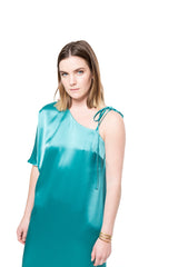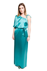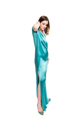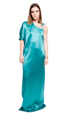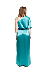 Vestido Largo Asimétrico Con Peso Turquesa