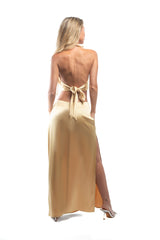Vestido con aberturas al costado, elegante y único. Úsalo con unos zapatos altos, kimono de gasa o estampado como también con una chaqueta de pedrería para resaltar aún más.