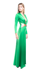 Vestido Elasticado Con Mangas Estampado Colores Cintura Verde Esmeralda