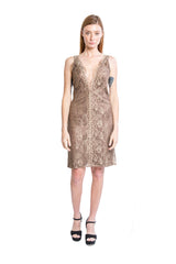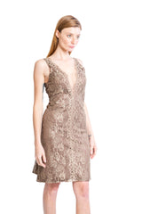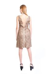 Vestido Encaje Corto Café Verde Dorado